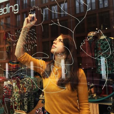 Wendy werkt met potlood, verfstiften en acrylverf. Naast illustraties ontwerpt ze broches, knuffels en kussens. Ook schildert Wendy vaak op vintage porselein. Tot eind mei 2018 is Wendy bij DRAAGBAAR te bewonderen.