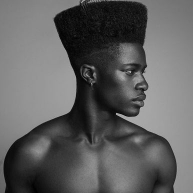 Denk aan de “mohawk” of een rock ’n roll jaren ’50 kuif ala James Dean en Elvis.